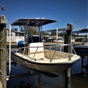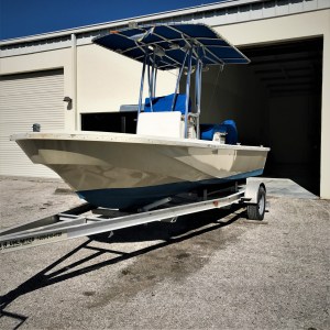 New Awlcraft Paint job, Navy Blue and Snow White on a Maverick Flats Boat